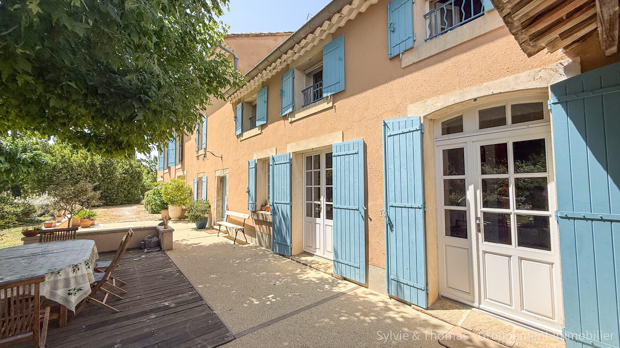 Mas authentique à Caderousse – 327 m² habitables, gîte indépendant et jardin arboré Situé dans la campagne préservée de Caderousse, ce mas de caractère offre un cadre de vie paisible et verdoyant. Dès l’allée d’accès, le charme opère : arbres matures, espace barbecue, plusieurs terrasses et un jardin soigneusement entretenu invitent à la détente. La maison principale développe 258 m² habitables répartis sur deux niveaux, avec de généreux volumes de réception, un double salon-séjour de plus de 49 m², une cuisine spacieuse, plusieurs espaces de rangement (cellier, buanderie, dressings) et 4 chambres confortables à l’étage. Un bureau complète l’espace nuit pour un usage mixte ou professionnel. Un gîte indépendant de 68 m² en rez-de-jardin permet d’accueillir famille, amis ou voyageurs, avec sa propre cuisine, salon, chambre et salle d’eau avec WC et son dressing. Parfait pour la location saisonnière ou un projet familial. À l’extérieur, les 125 m² de terrasses (plein sud, jardin, bassin et espace couvert) prolongent harmonieusement les espaces intérieurs. Le vaste garage de 83 m² et les annexes fonctionnelles (lavoir, barbecue) viennent compléter les prestations. Ce mas conjugue authenticité, fonctionnalité et potentiel évolutif dans un environnement calme et champêtre, à proximité d’Orange, Avignon et des grands axes. Idéal pour une grande famille, un projet de chambres d’hôtes ou un investissement locatif rural. Chauffage au sol au RDC et radiateurs a l'étage sur chaudière à granulés (3 ans), Panneaux solaires, rapport environ 1 600 €/an, clim réversible, arrosage intégré. - Honoraires charge Vendeur - DPE : Consommation C (177) GES A (5) Vos agents : Sylvie 06 70 31 37 55 et Thomas 06 47 94 36 90 - Ei Sylvie ROCHE RSAC 750 573 529 Avignon -
