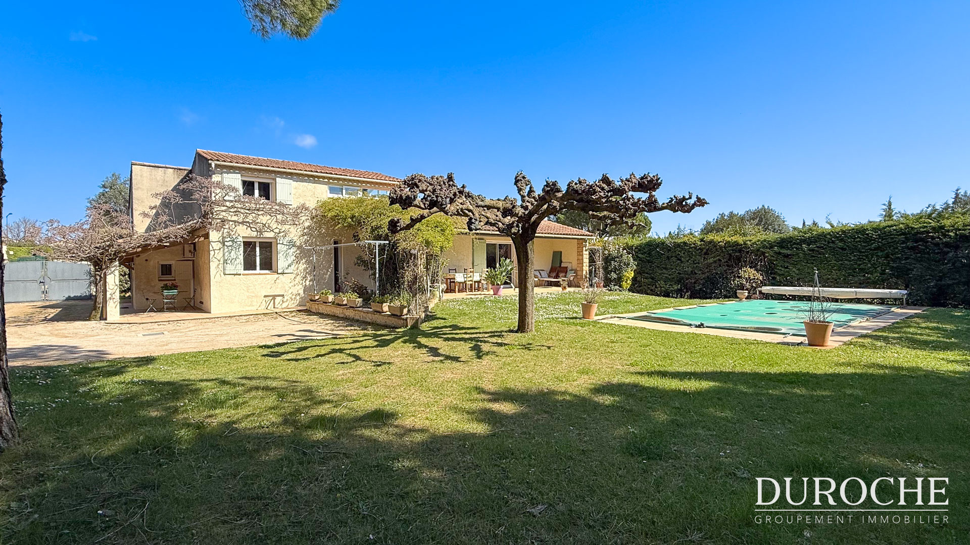 À Roquemaure, dans quartier Résidentiel, sur une belle parcelle d’environ 1 000 m², découvrez cette maison R+1 de 158 m² habitables, parfaitement entretenue et offrant un cadre de vie calme, sans vis-à-vis et exposé plein sud. Dès l’entrée, vous profitez d’un intérieur chaleureux avec des matériaux de qualité et un agencement pensé pour le confort au quotidien. La maison propose une pièce de vie lumineuse d’environ 53 m², composée d’un salon, d’un séjour et d’une cuisine, offrant de beaux volumes et une belle ouverture sur l’extérieur. Cet espace est équipé d’une climatisation, d’une cheminée avec insert et bénéficie d’un excellent confort thermique. Le rez-de-chaussée accueille également une suite parentale, idéale pour une vie de plain-pied, ainsi que des espaces fonctionnels comme un dressing d’entrée, une seconde chambre et une salle d’eau avec WC. À l’étage, vous trouverez 3 chambres supplémentaires, une salle de bain, un WC indépendant, ainsi qu’un bureau / salle de jeux, parfait pour une famille ou le télétravail. La maison est également équipée de climatisation à l’étage et dans la chambre parentale. Construite en 1989, la maison a bénéficié d’améliorations régulières, notamment des menuiseries aluminium changées en 2018, des volets roulants complétés par des volets bois, ainsi que des moustiquaires pour plus de confort. Côté équipements, vous disposez d’un chauffage central au gaz de ville, d’un chauffe-eau solaire, ainsi que d’un double réseau eau de ville + forage avec système de bascule, le tout raccordé au tout-à-l’égout. La maison bénéficie également de nombreuses annexes avec plus de 75 m² supplémentaires comprenant garage (33m2, cave (31m2), buanderie (12m2). À l’extérieur, le terrain est un véritable atout avec une piscine coque 8,5 x 4, équipée d’un filtre à sable et d’un système de traitement automatique au chlore, ainsi que de nombreuses terrasses, dont certaines couvertes et disposant d’un store banne, permettant de profiter pleinement de chaque moment de la journée. L’ensemble est plein sud, sans vis-à-vis, dans un environnement privilégié. Une maison complète et soignée, idéale pour une famille, alliant volume, confort et qualité de vie. Situé à l’entrée sud de Roquemaure ce bien bénéficie d'un emplacement stratégique. L'accès à l'échangeur de l'autoroute A9 (sortie 22) se fait en moins de 5 minutes, plaçant le secteur au carrefour du Gard et du Vaucluse. Commerces : Supermarché (Intermarché) et zone commerciale à 2 minutes. Services : Pharmacie, centre médical et boulangerie à 3 minutes. Scolarité : Écoles maternelle et primaire à 4 minutes. Transport scolaire : arrêt de bus accessible à pied immédiatement sur un trajet sécurisé Orange : 15 minutes. Les Angles : 15 minutes Avignon (Gare TGV) : 20 minutes. Bagnols-sur-Cèze : 20 minutes. Nîmes : 35 minutes via l'A9. Site de Marcoule : 20 min - Honoraires charge Vendeur - DPE : Consommation C (112) GES C (12) Réseau : Groupement Immobilier Vos agents Sylvie 06 70 31 37 55 et YHomas 06 47 94 36 90