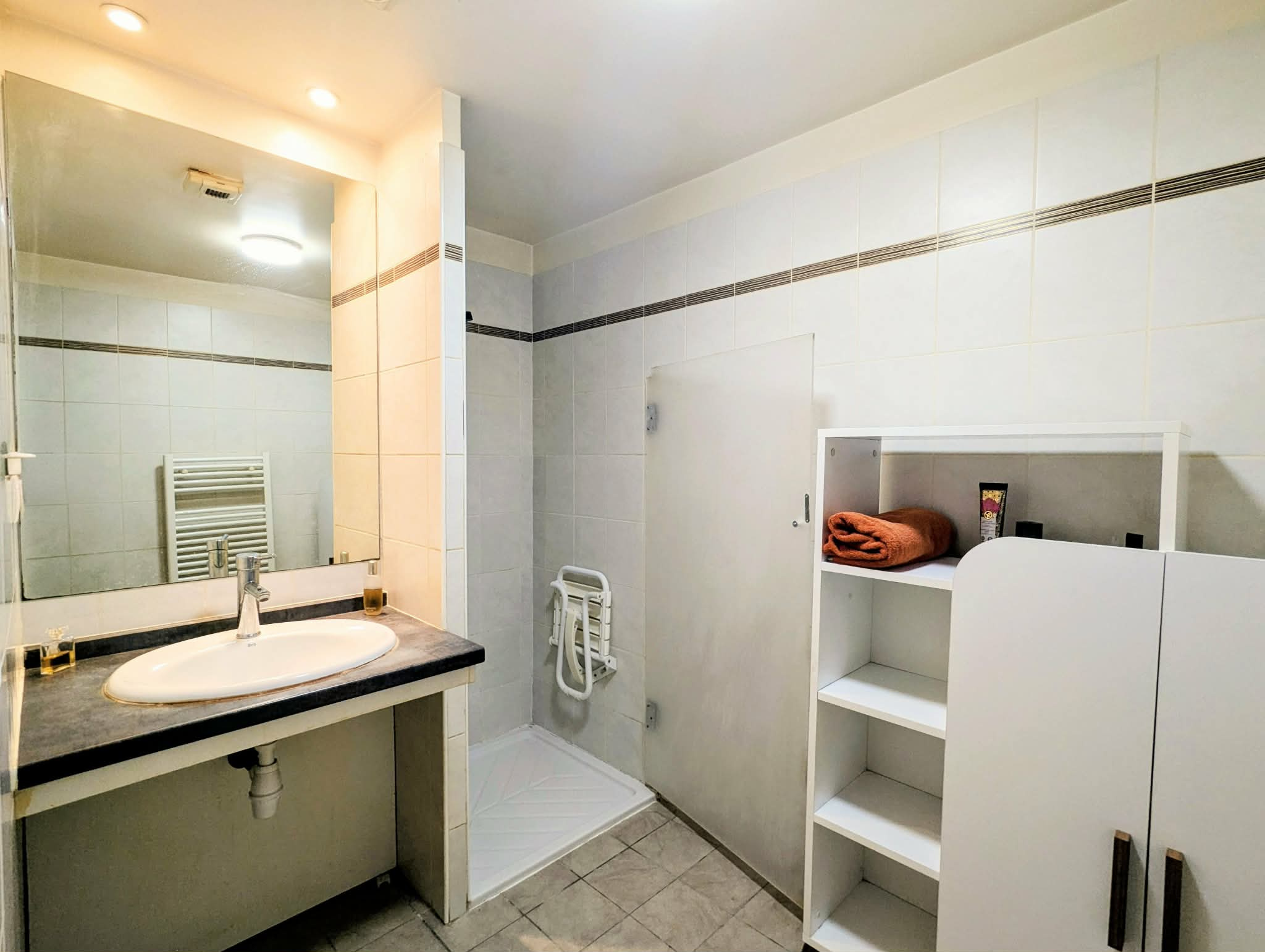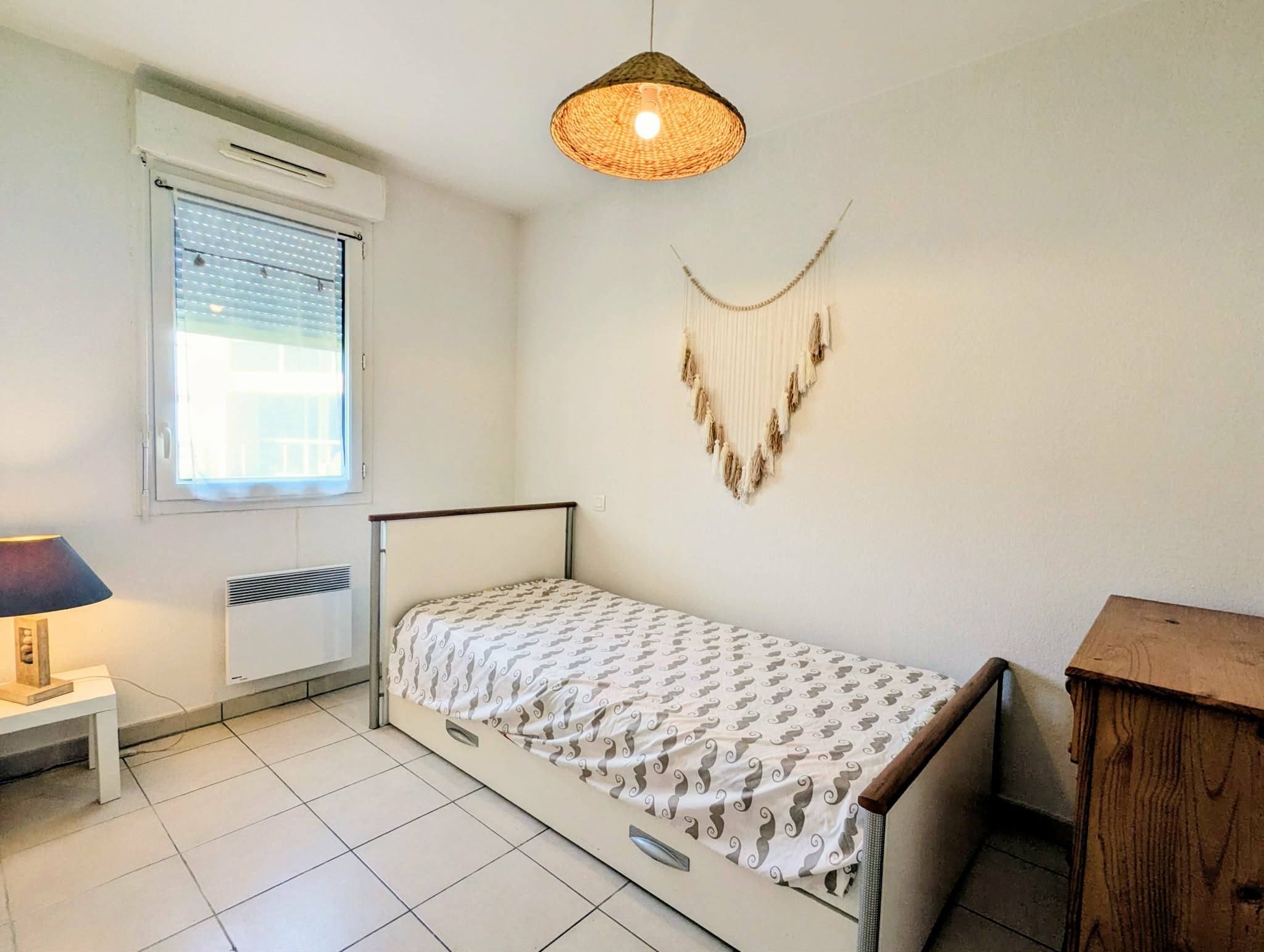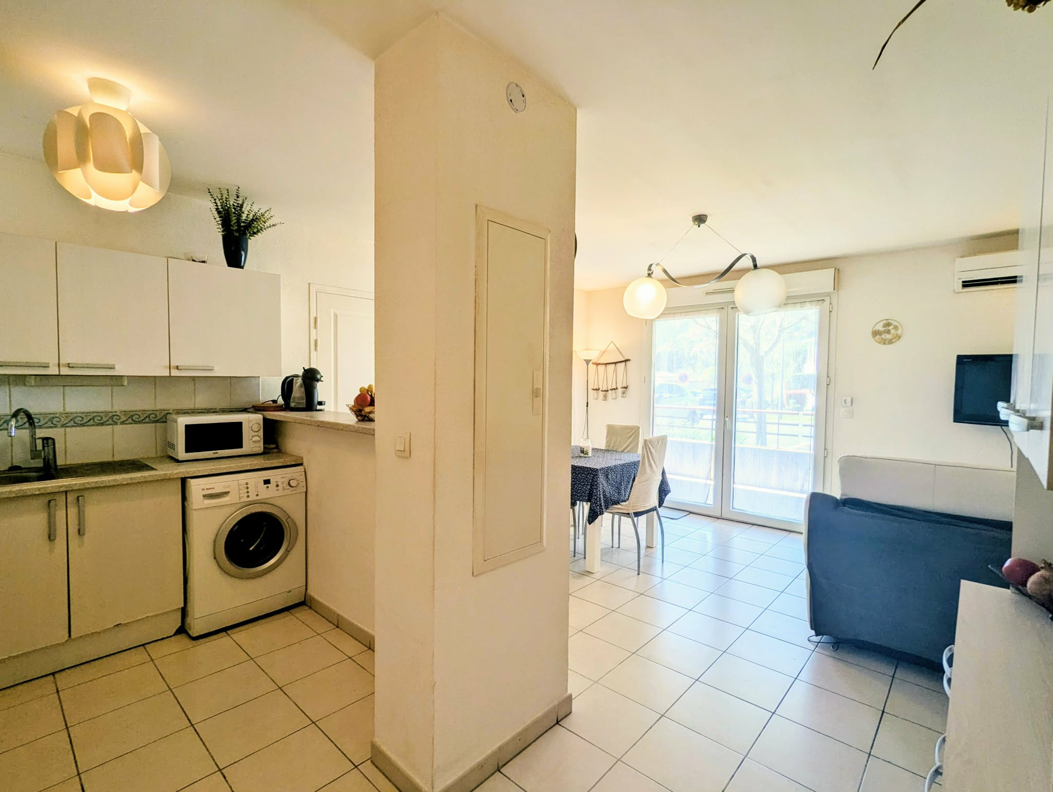 Appartement en résidence sécurisée à Lamalou-les-Bains Situé dans une résidence récente, fermée et parfaitement entretenue, cet appartement en rez-de-chaussée offre un cadre de vie agréable, au calme, tout en restant à proximité du centre-ville et des commodités. D’une surface habitable d’environ 58 m², il se compose d’un séjour avec cuisine ouverte d’environ 26 m², lumineux et convivial, avec un accès direct à la terrasse par une baie vitrée. La partie nuit comprend une chambre principale d’environ 15 m² avec penderie, ainsi qu’une chambre d’appoint d’environ 8 m², idéale pour recevoir ou aménager un espace bureau. Une salle d’eau d’environ 4 m² et un WC indépendant complètent l’ensemble. La résidence dispose d’un très beau parc paysager, bien entretenu, qui apporte un environnement agréable et soigné. L’appartement bénéficie également d’une terrasse de 22 m², accessible depuis le séjour, idéale pour profiter des extérieurs en toute tranquillité. La résidence est sécurisée (portail, digicode, interphone), adaptée PMR et équipée de la fibre optique. Elle propose également une salle commune pour les résidents, dans un environnement calme et bien tenu. Climatisation installée dans le logement, apportant un confort appréciable en toute saison. Stationnement facile avec parking gratuit à l’extérieur de la résidence. Taxe foncière : 830 € Charges de copropriété : environ 100 € par mois Un bien soigné, dans une résidence de bon standing, idéal pour une résidence principale, un pied-à-terre ou un investissement locatif à Lamalou-les-Bains. N'hésitez pas à contacter votre conseiller Groupement Immobilier David LARCO Agent Mandataire EI N° RSCAC Béziers 351790217 Tel : 06.59.08.52.62 E-mail : d.larco@groupementimmo.net